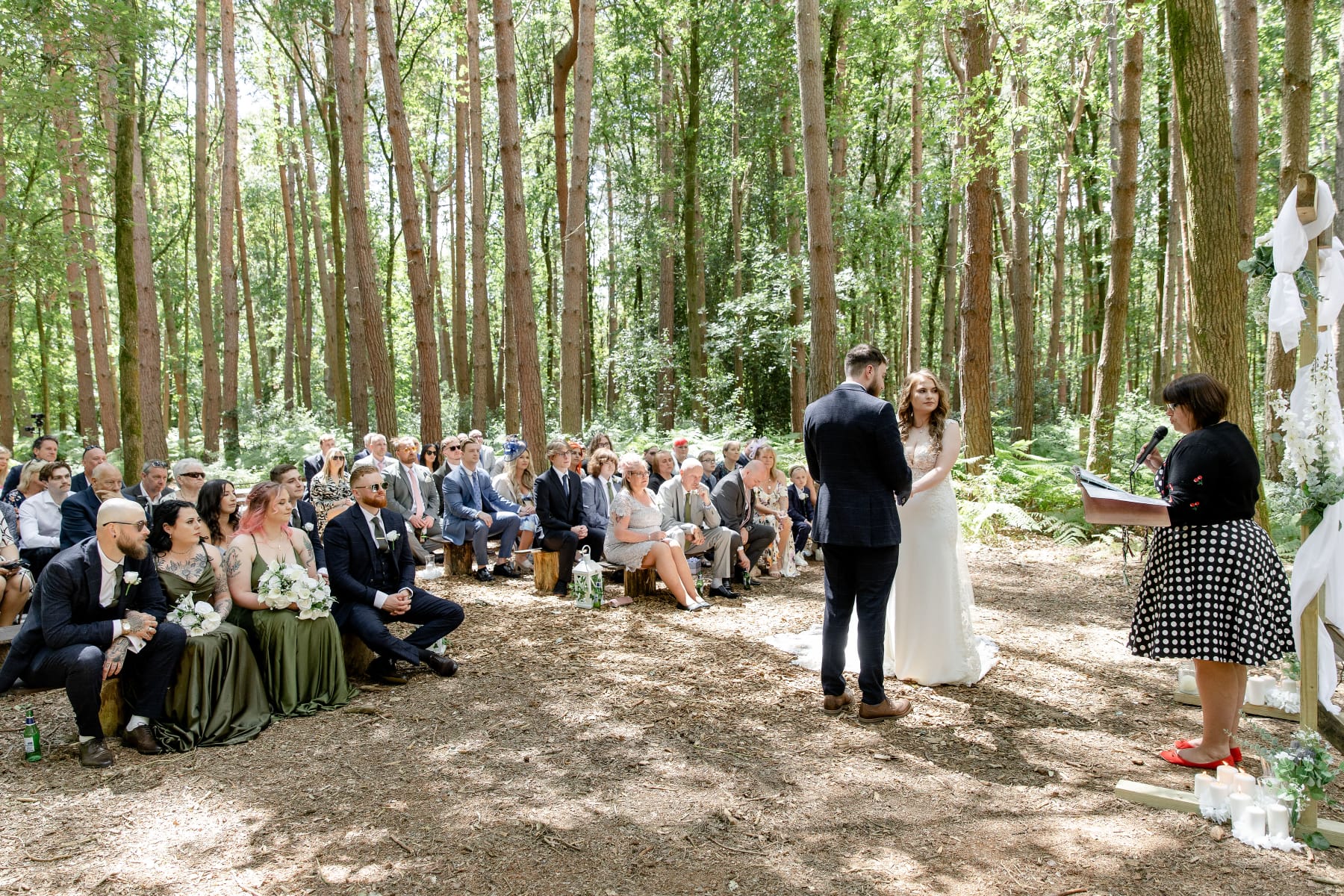 We have a stunning area specifically for your blessing or joining ceremony, the tall trees create a stunning and natural wedding aisle with rustic seating to truly immerse your guests in the woodland wedding experience.