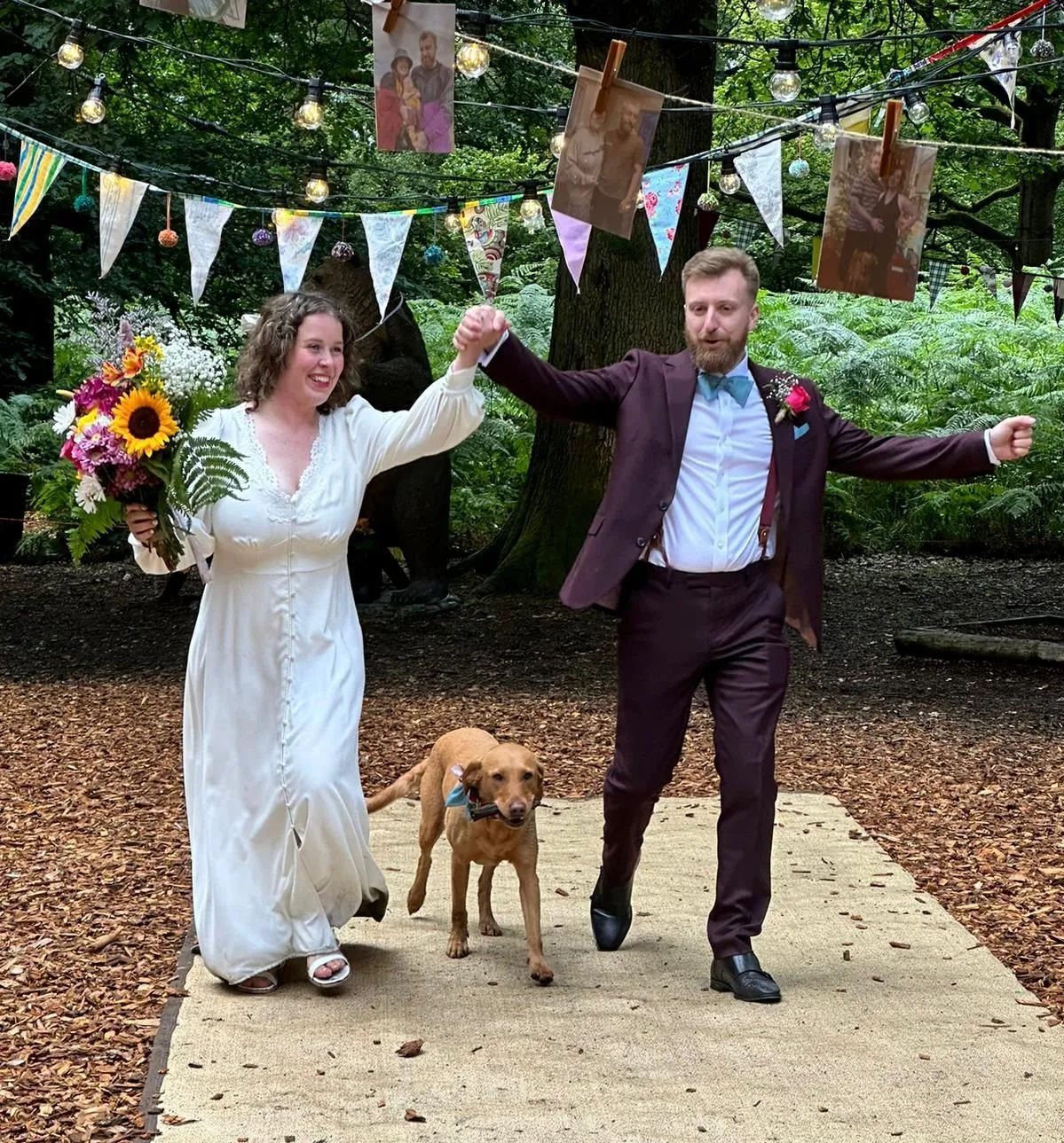 “Amy & Ellis well and truly put their mark on their woodland wedding, with a life sized tiger and gorrilla in attendance they really went to town with the decor. A beautiful day with much laughter and four legged family members well and truly on the guest list” Amy & Ellis July 2024